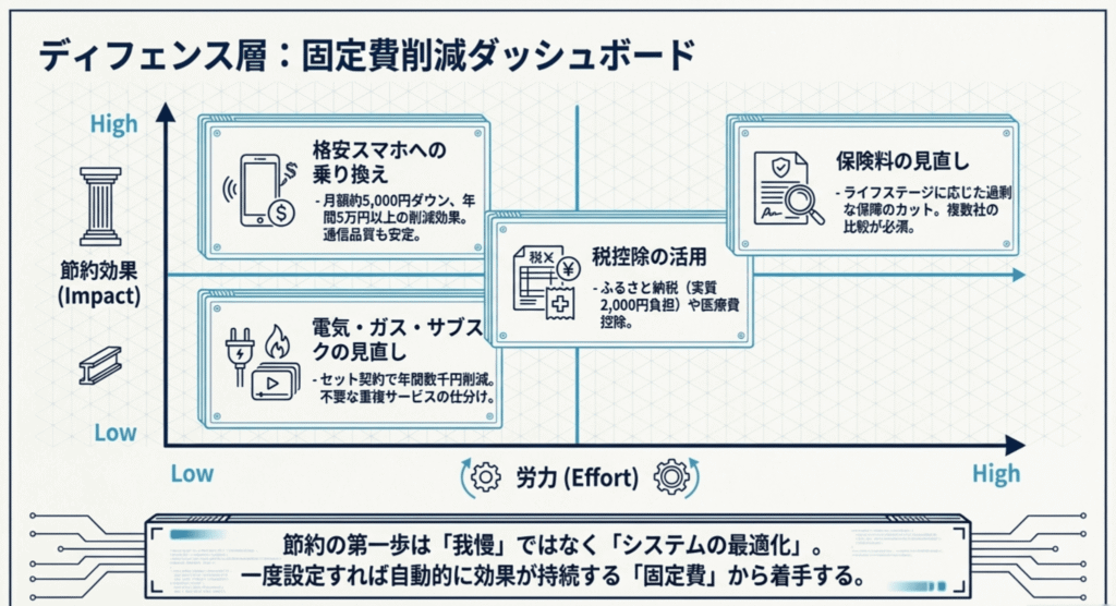 特に、一度の努力で一生効果が続く「固定費」の最適化は、実質的な「自動収益」を生み出します。